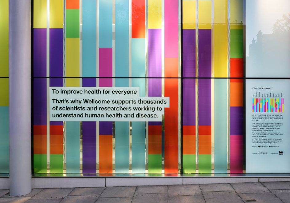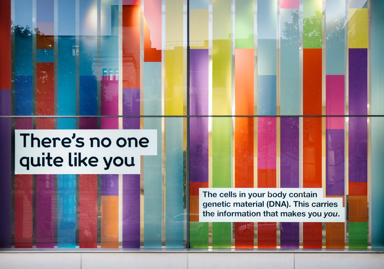 A striking window installation to inspire people to consider the importance of genomics is on display outside the London offices of the Wellcome Trust, a global charitable foundation that supports scientific research.