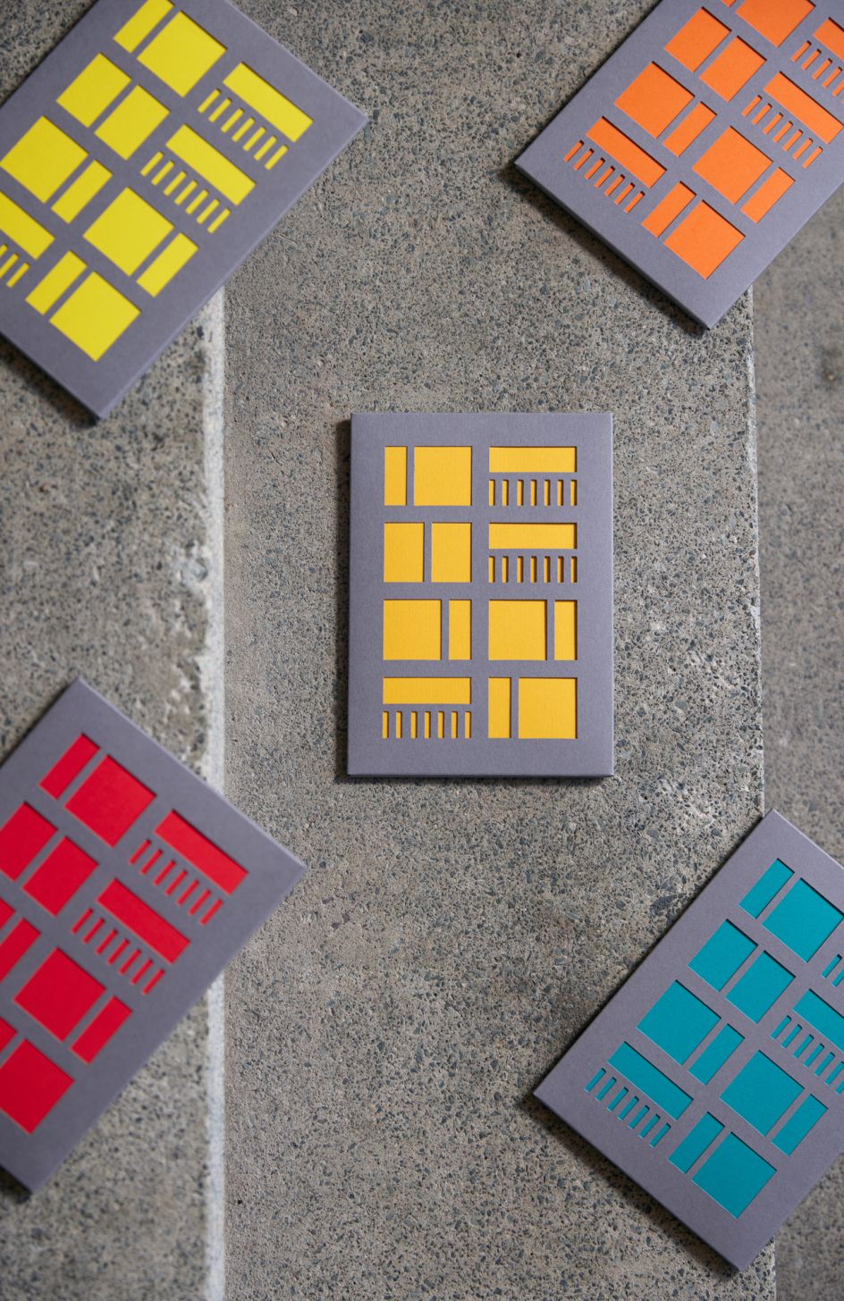 Meanwhile, the die-cut design of the envelope is taken directly from the famous facade of the building. Coloured inserts help to realise this look, as well as connect to the theme of Park Hill's regeneration. They also neatly tie back to Photography by Anderson's brand colour.