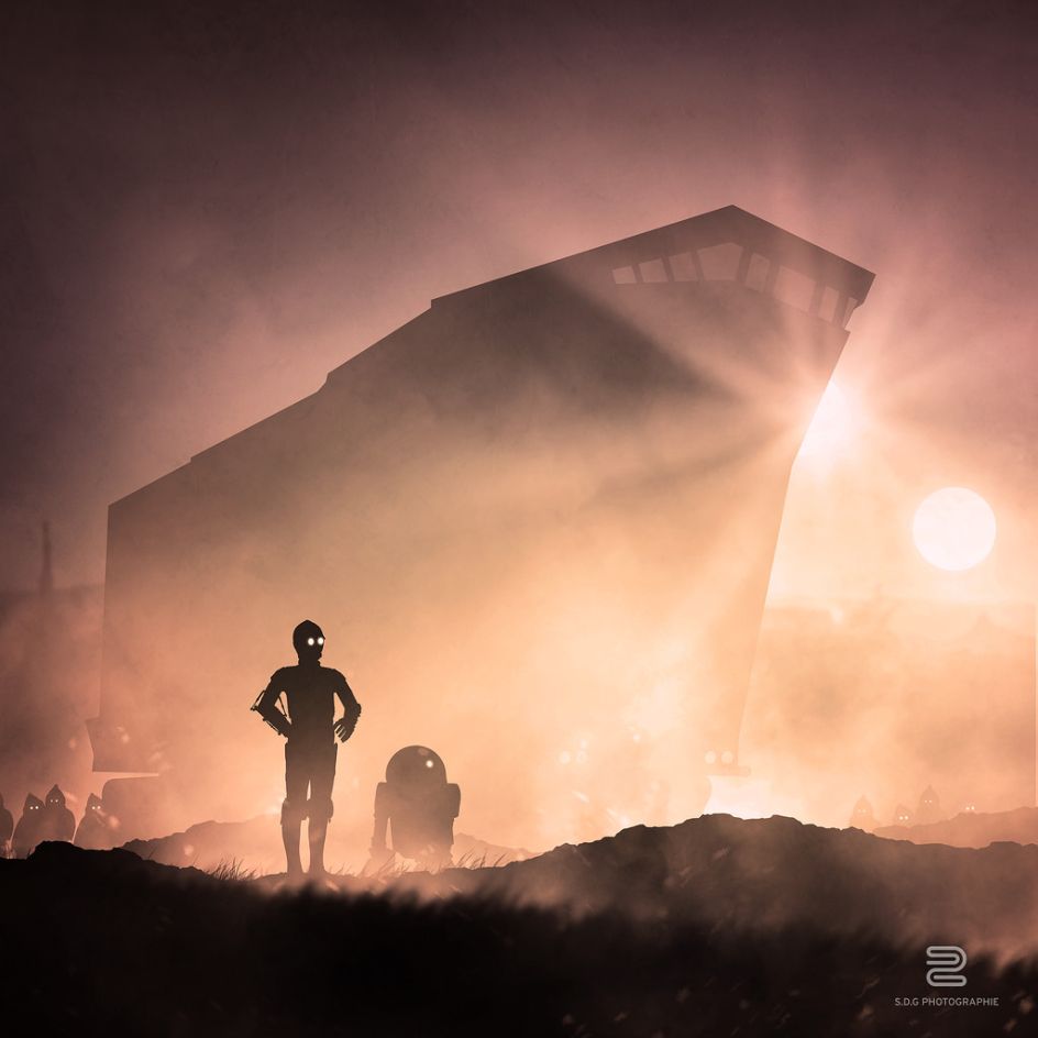 In his breathtaking series Le Cosmos de Star Wars, Parisian freelance photographer and graphic designer Sébastien DEL GROSSO takes photographs of backlit Star Wars toys to create dramatic silhouettes. He then adds drawings and illustrations to complete each artwork, creating a collection of images that pay homage to the old Republic.