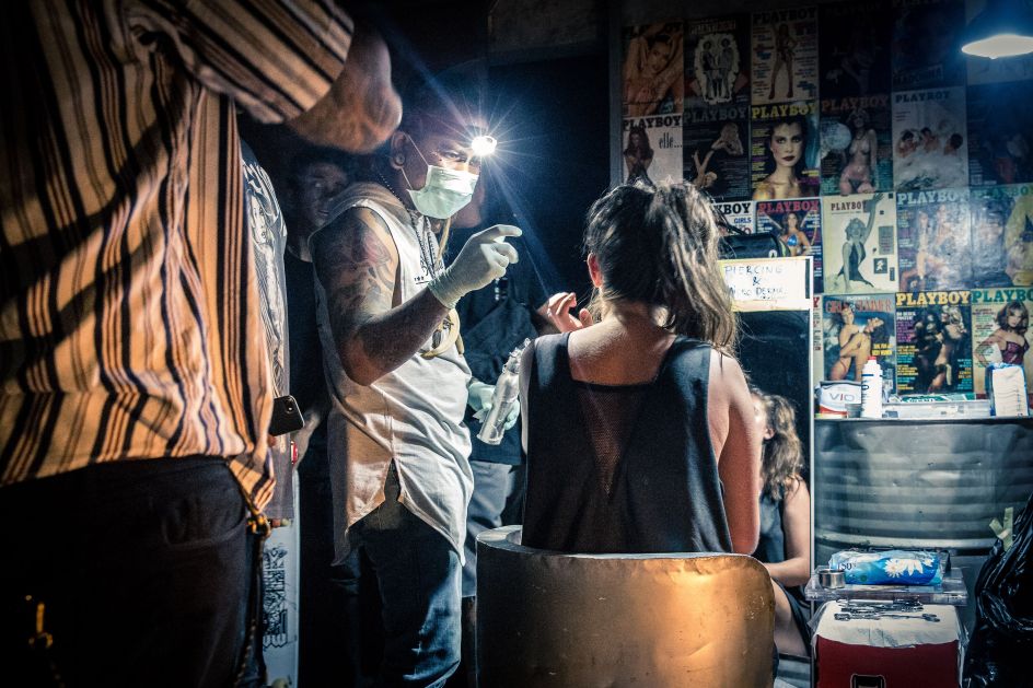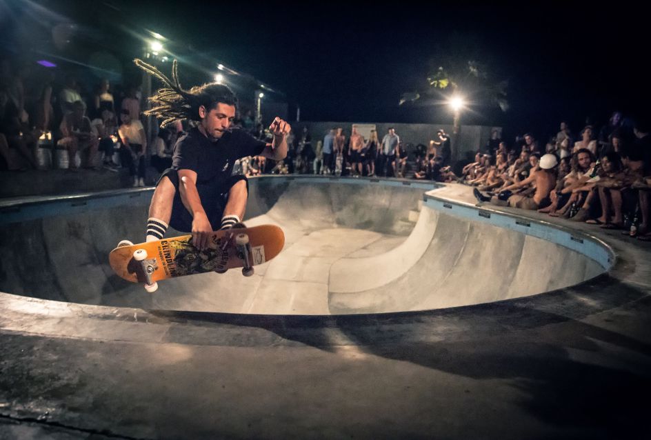 The result of her new obsession is this series of photographs, highlighting Bali's exploding skate scene. She adds: "When the sun goes down, the raw, unharnessed energy spills into the skate bar aptly named 'Pretty Poison' and things get heady with skate competitions running alongside an eclectic mix of live music, eye-watering strong cocktails and on-site piercing and tattooing. Not for the fainthearted but definitely worth a trip to see Bali’s skateboarding underbelly ignite in the night."