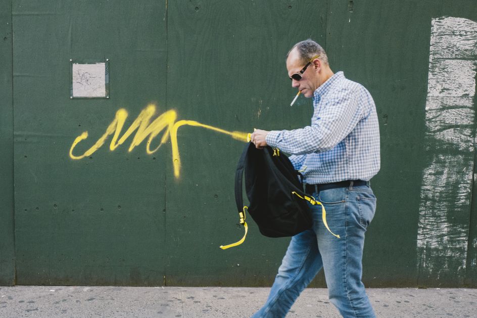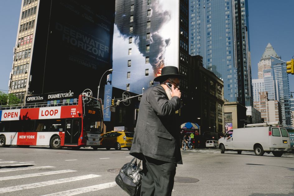 The images it contains depict the interplay between New Yorkers often lost in their own worlds: moving through crowded intersections, past street signs and advertising billboards, and more; as they hustle to get to work, home or their next appointment.