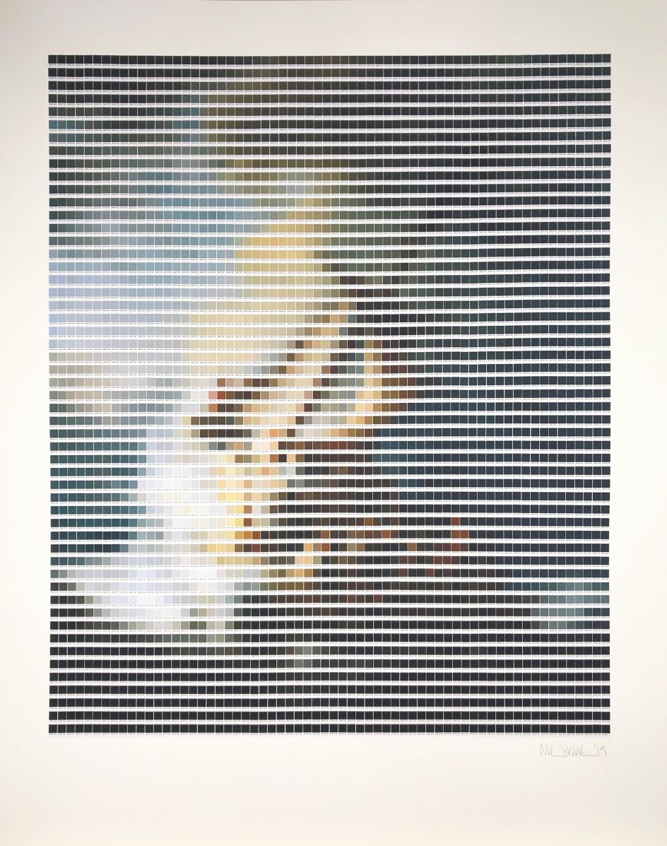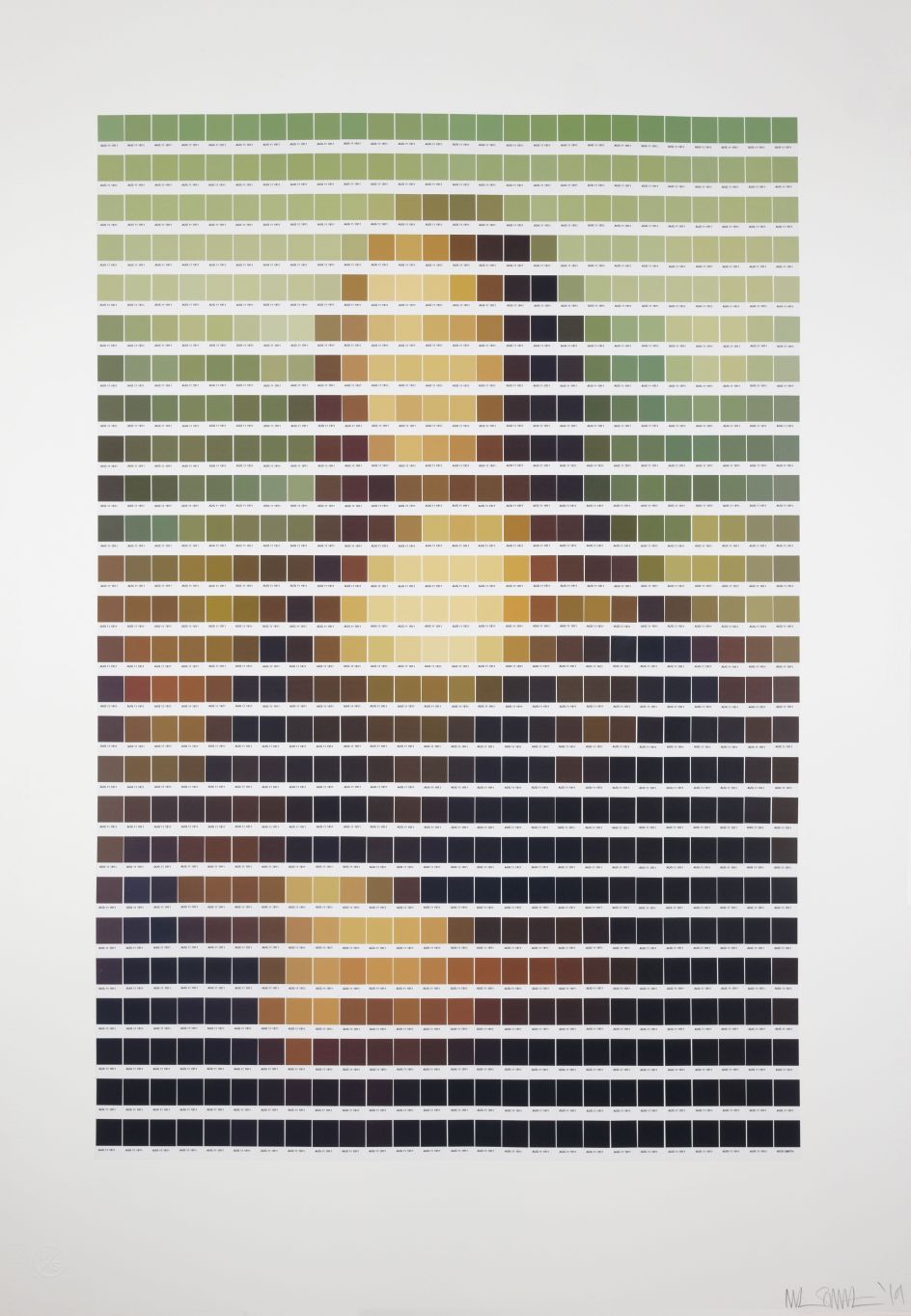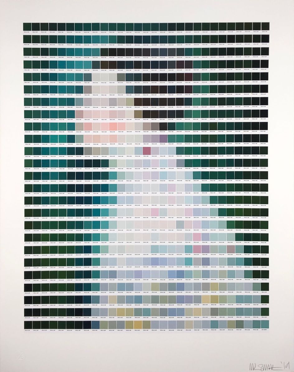 The show consists of 20 mixed medium artworks and screen prints, new works by Smith that highlight the absurdity and intrigue left in the wake of famous art heists. Using graded colour chips made by himself, these pieces have a pixel like quality that creates a three-tier experience for the viewer.