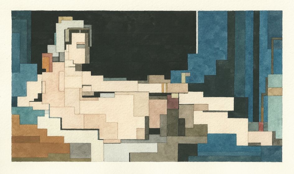 New York artist Adam Lister makes pixelated, acrylic paintings based on iconic images from the art world. Inspired by cubism, minimalism and 8-bit video games, Lister loves to reduce famous paintings to geometric abstractions.