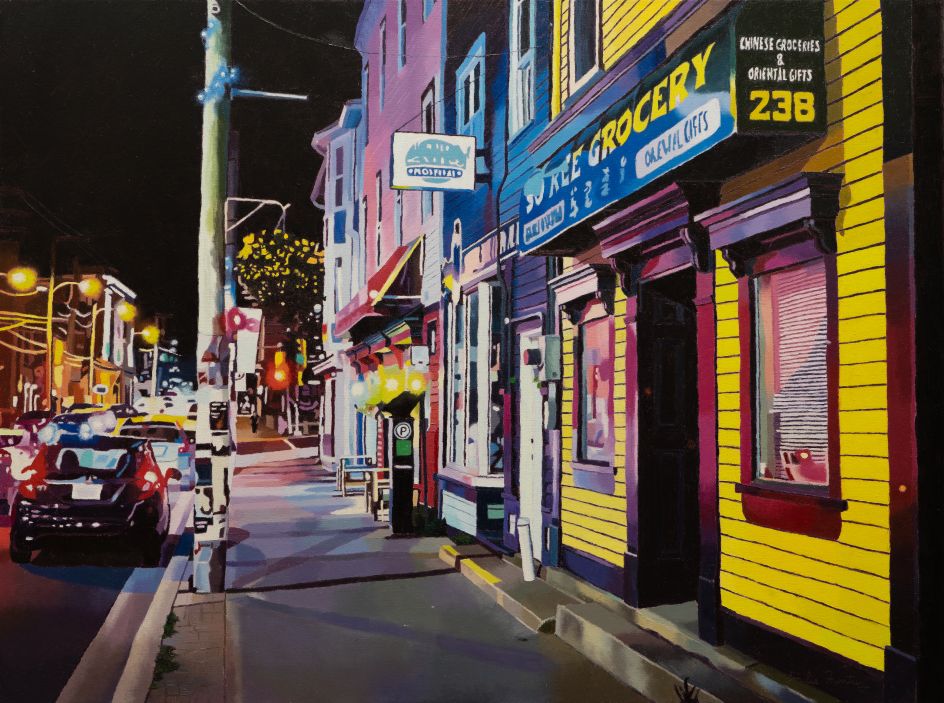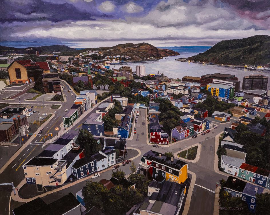 The intense colour and intricate space division found in these paintings testifies to the transformative role of place that Mike and Emilie have realised anew in the city of St. John's, the capital and largest city of Newfoundland and Labrador.