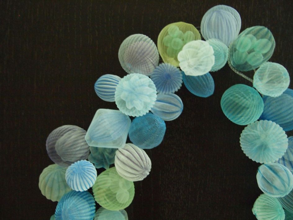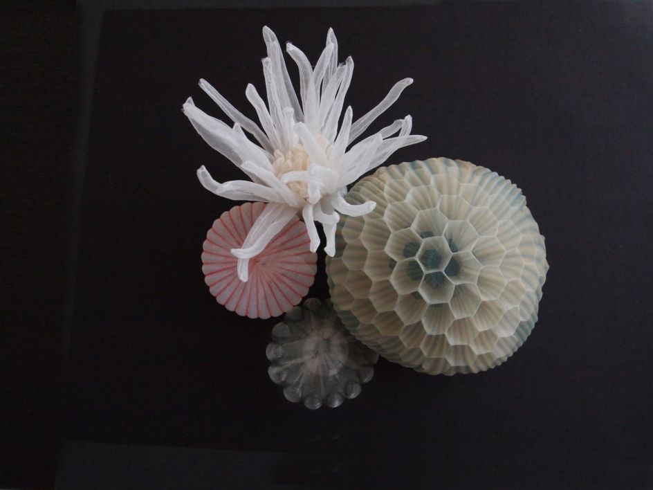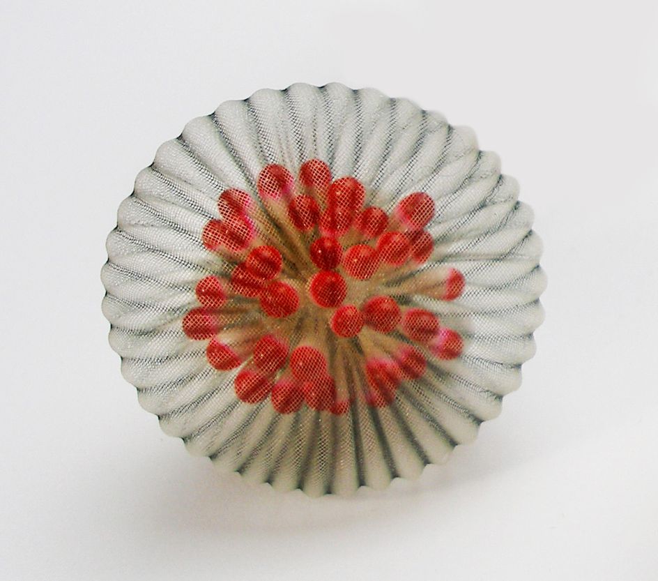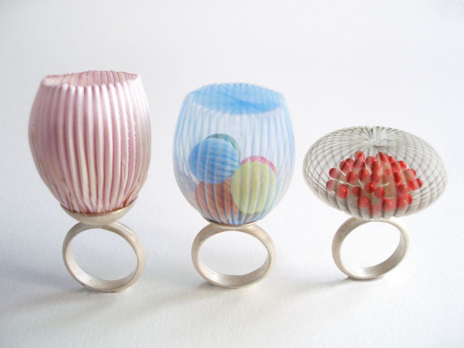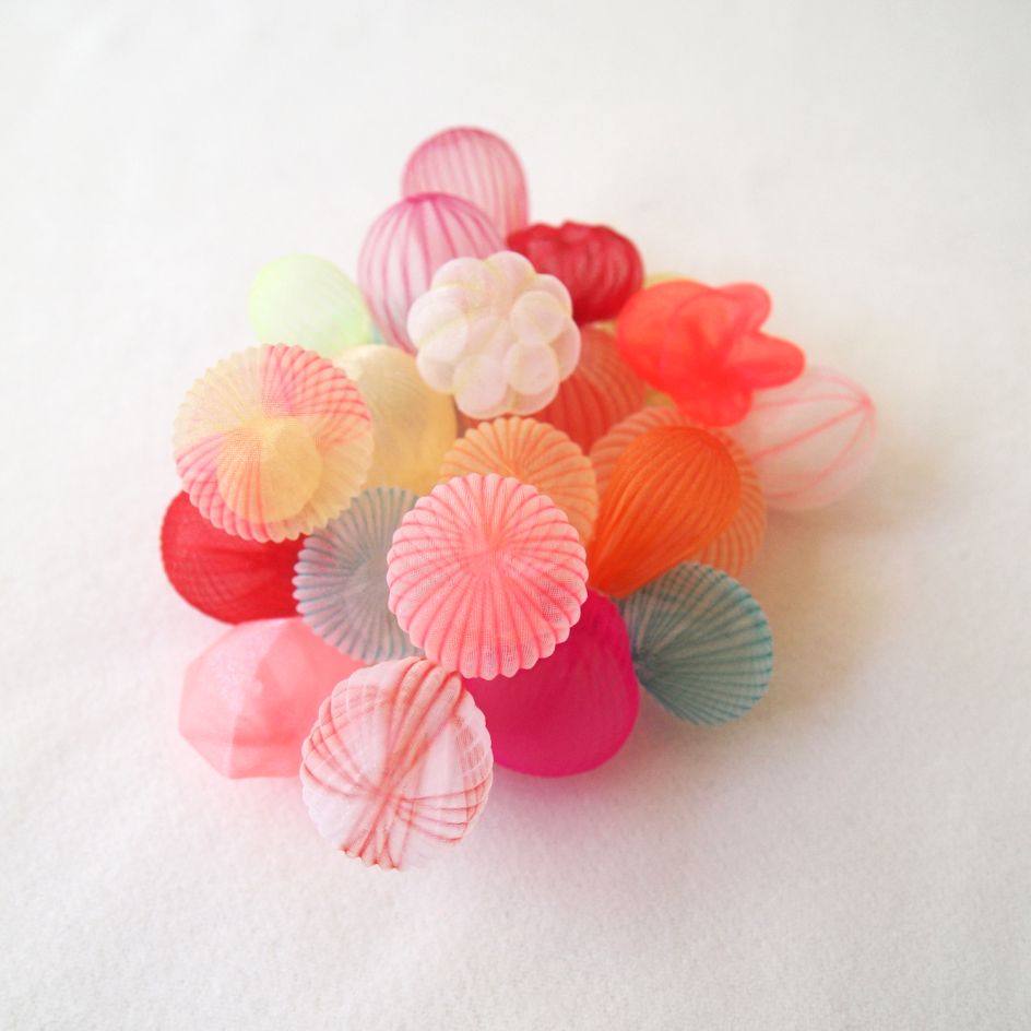 In her ongoing body of work, Japanese artist Mariko Kusumoto loves to use polyester fabric and assemble it into three-dimensional wearable and sculptural jewellery pieces. Inspired by various sea creatures, her translucent forms are crafted into necklaces, brooches and even rings.