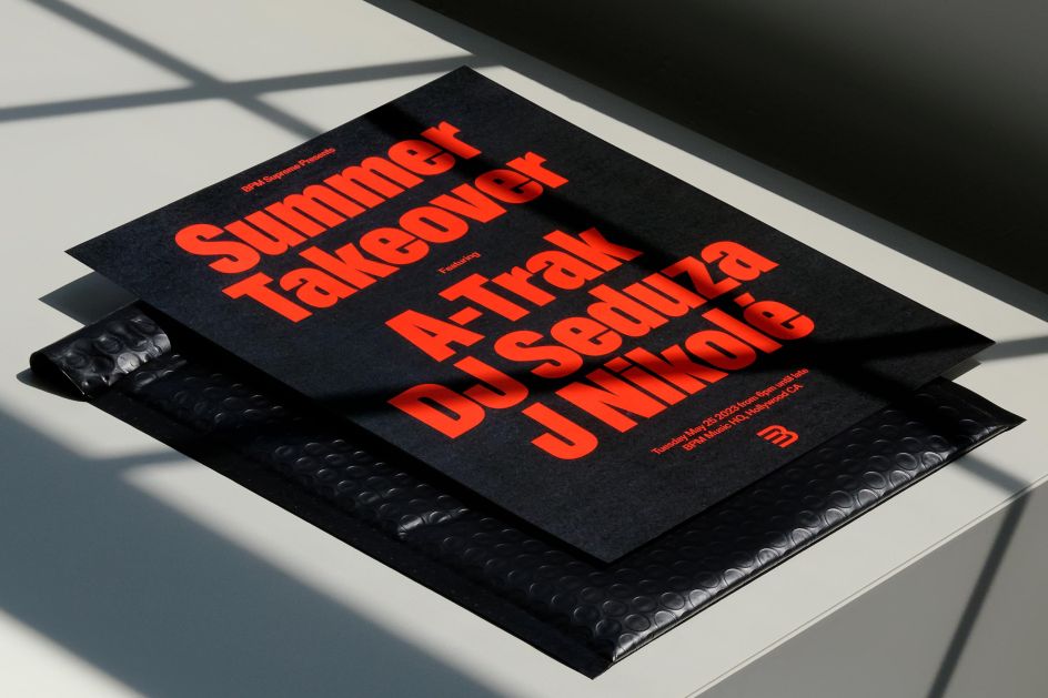 At its heart, is BPM's bold, condensed headline typeface – BPM Gravity Extra Condensed by ABC Dinamo, for those who need to know – inspired by nightlife event posters, seen plastered on billboards and buildings around any vibrant city.
