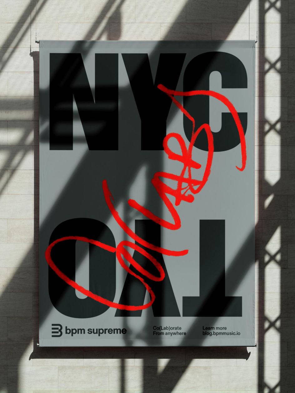 The Brooklyn studio began by creating a system inspired by the visual cues of track mixing with certain elements becoming subtle gestures that hint at BPM's product without being too literal. For example, in layouts there are vertical dividing lines reminiscent of beat intervals while the new logo is a symbol referencing keys of a keyboard, drum pad or laptop to play on the brand's musical and technical sides. Motion brings the system to life thanks to Thales Muniz and Duncan Brazzil.