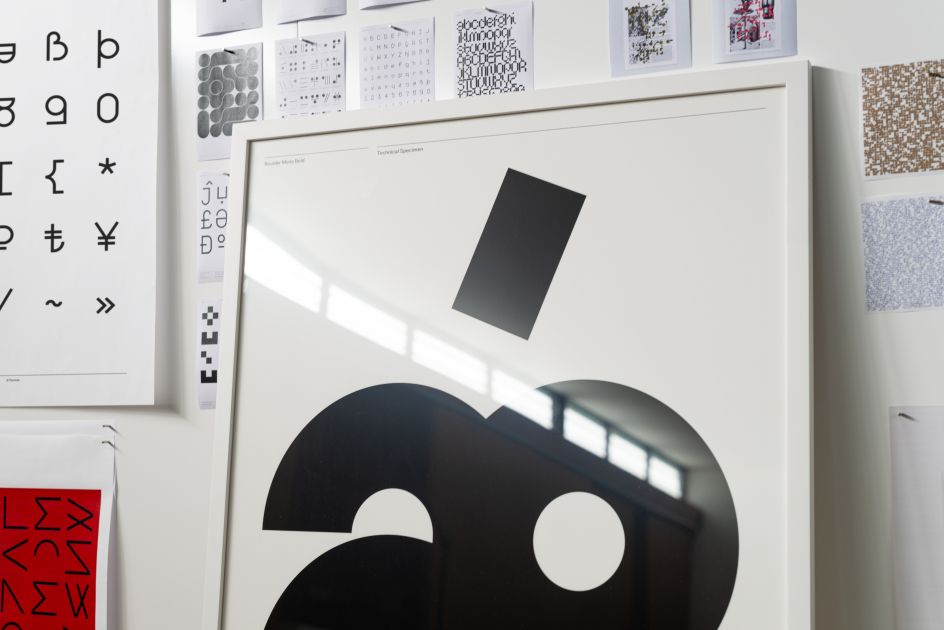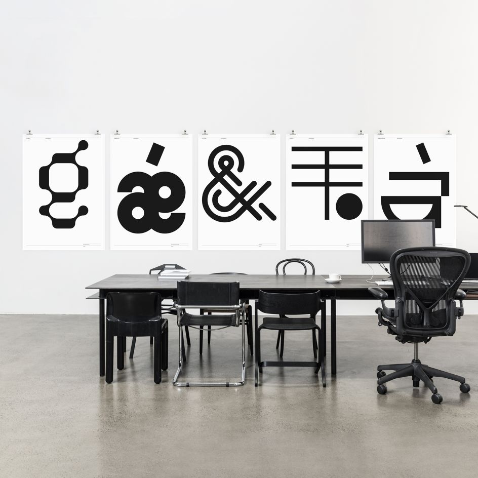 It's part of an ongoing series featuring letters chosen from bold and expressive typefaces published by its own foundry and is designed to act as a "striking reminder of the beauty of language and the graphic resilience of the Latin alphabet". The typefaces in question include Serous, Boulder Mono, One & Two, Black and NON Dit-Dah.
