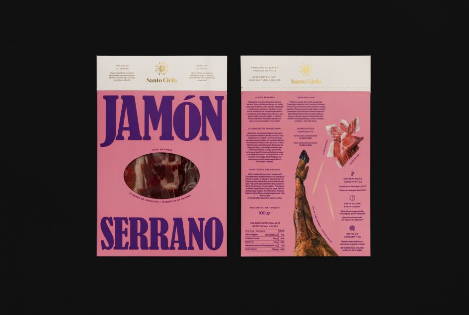 Since launching, the team has worked across a plethora of identities from branding, packaging, editorial and communication campaigns. And now, the studio has released a visual identity and packaging for Santo Cielo, a Chinese delicatessen brand that imports traditional Spanish products into China. Featuring a bold typeface and contrastingly detailed side panel, the identity gives off an almost vinyl-like quality in the way that it's been presented – it's something that you want to touch and keep forever in both the digital and physical world.