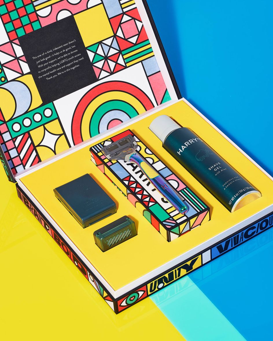 It features a limited-edition Harry's razor with a unique, iridescent, rainbowed finish, "designed to be a true positive reflection of Pride". While the packaging features Zipeng's bold type illustrations mixed with vibrant colours, inspired by his "long-standing passion for creativity without limitations, the power of simplicity, and an innate curiosity about the world and the people in it".