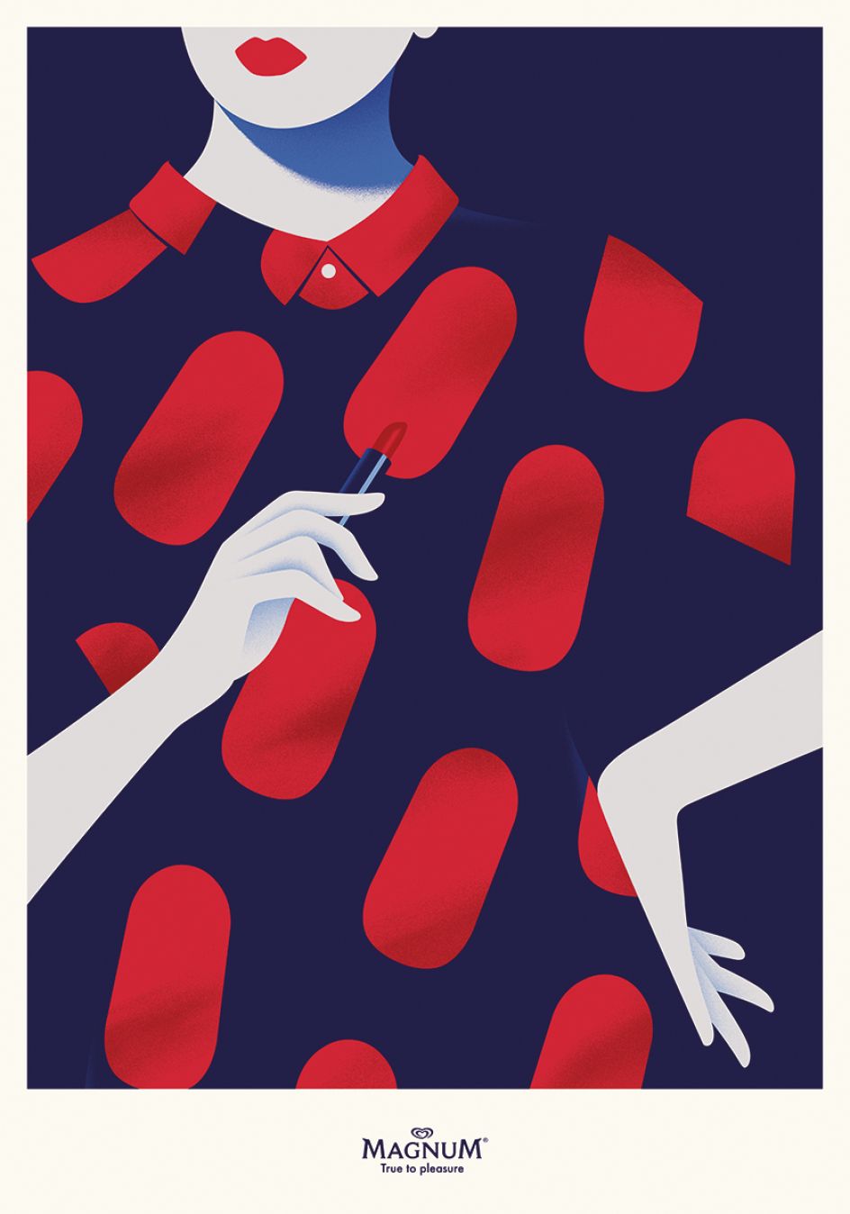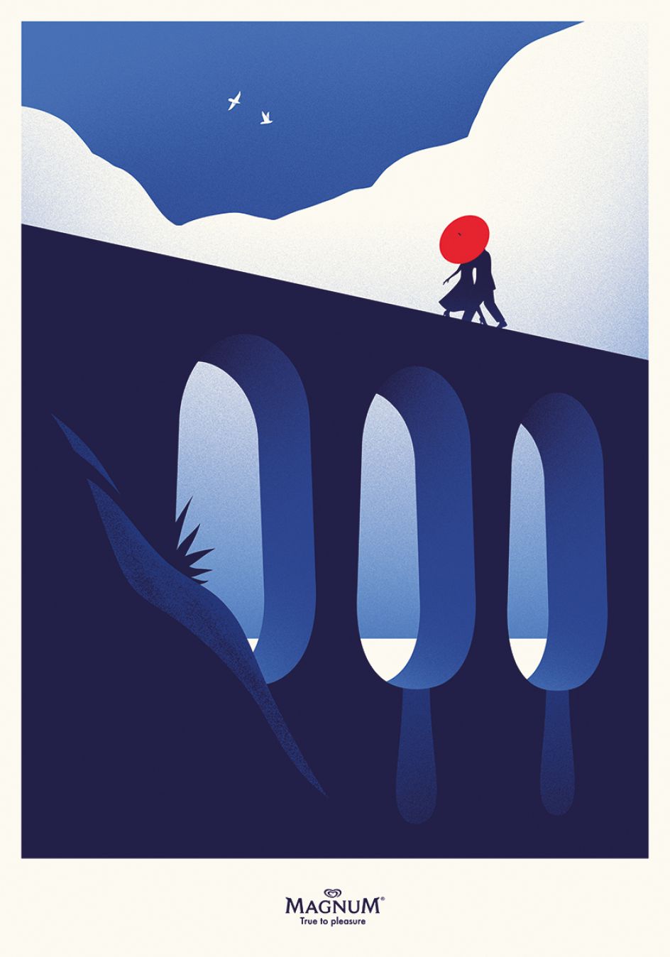 With a clever use of light and negative space, bold compositions in his favourite blue and a whole heap of mystery, the resulting illustrations subtly, as well as successfully, sell the iconic cold treat to Magnum's key markets in London, Paris, Rome, Madrid and Barcelona in preparation for summer.