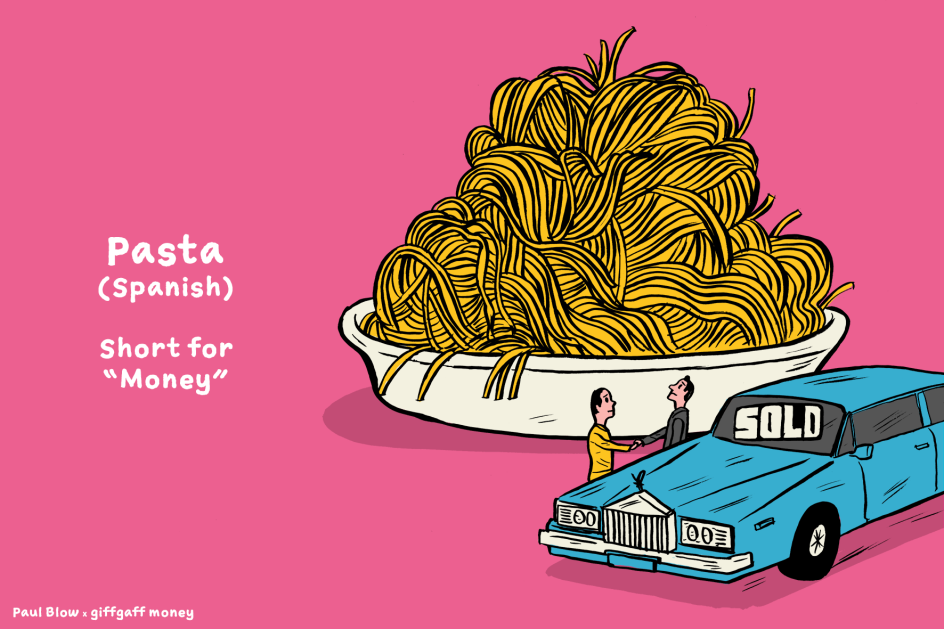 In a recent project for giffgaff Money, award-winning British illustrator, Paul Blow, created a series of eye-catching illustrations for seven entertaining slang words used for money around the world.