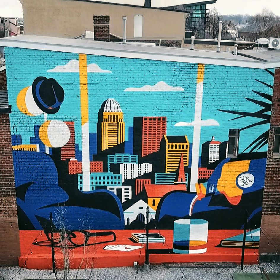 American artist Jeremy Booth has created a giant, colourful mural to celebrate the local creative community in the NuLu neighbourhood of Louisville, Kentucky.