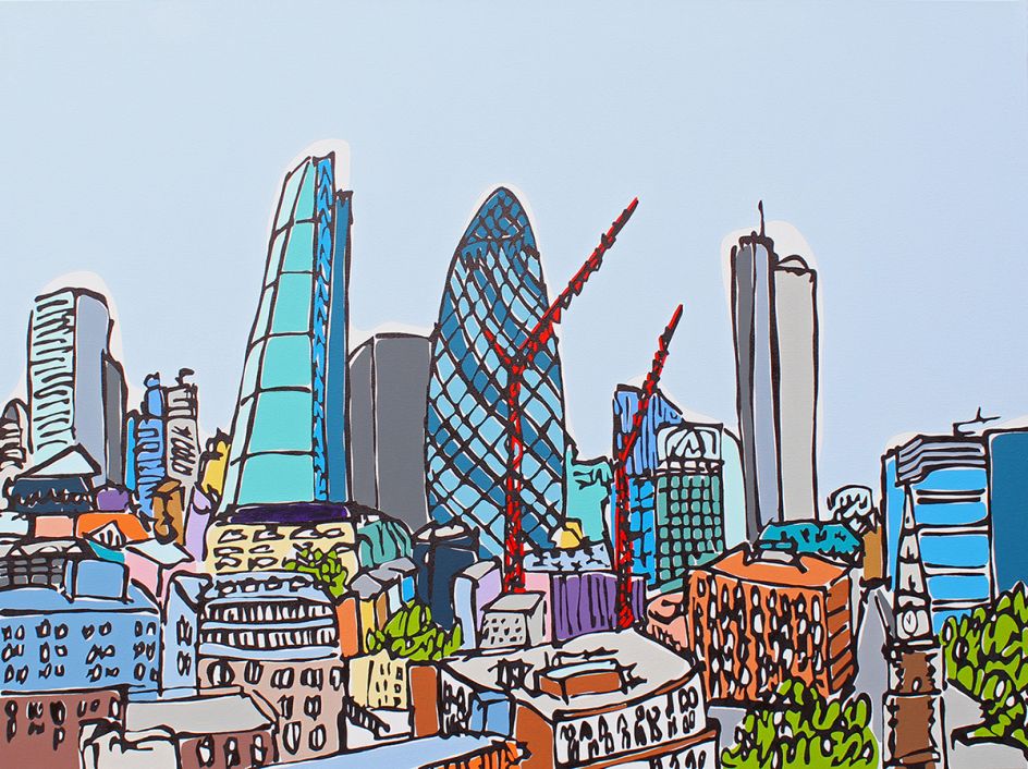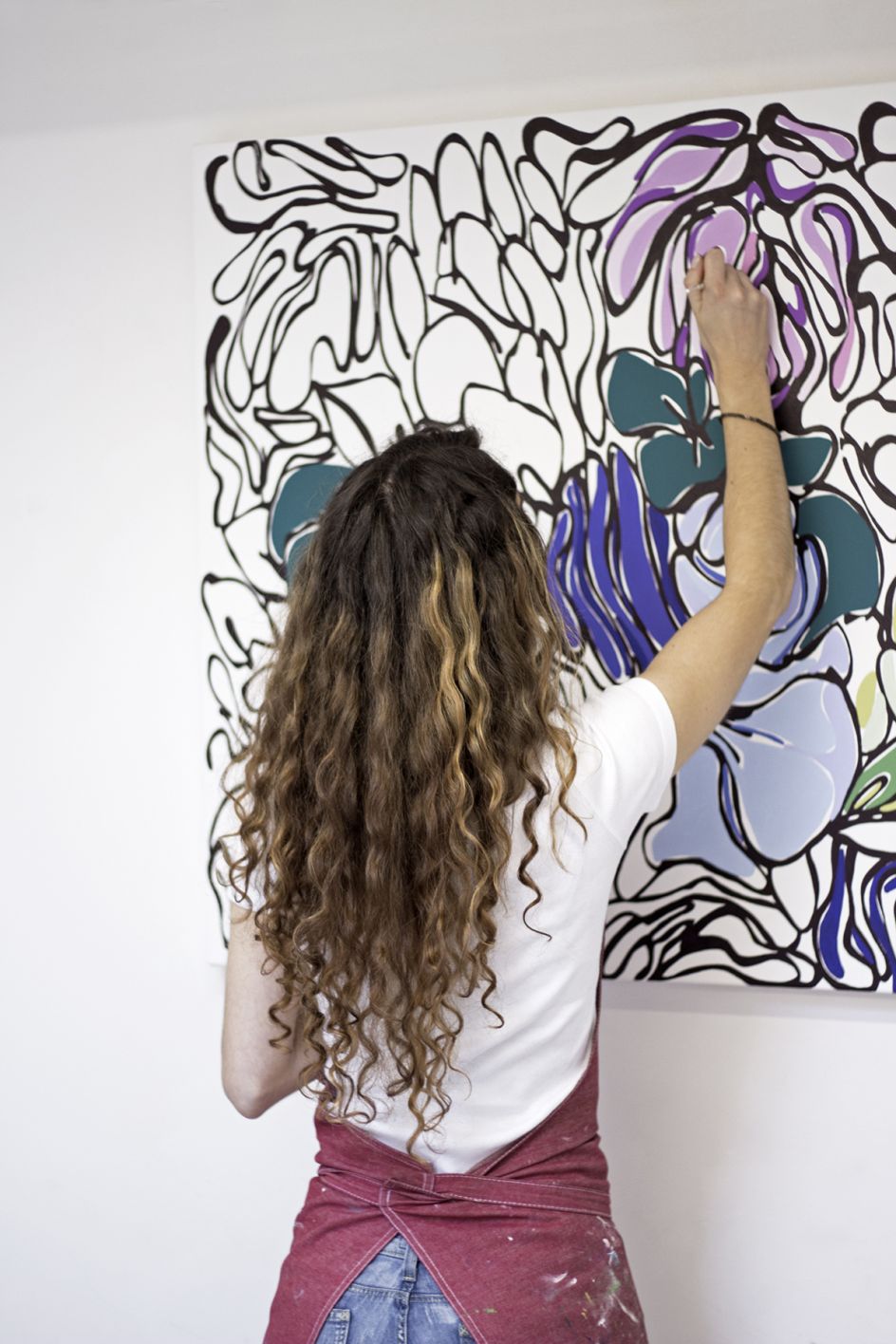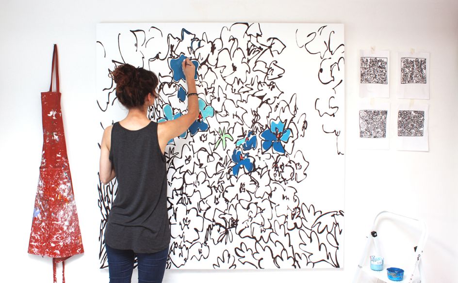 She has a particular love of painting urban landscapes: "I love cities to draw inspiration from, as there are so many compositions and shapes from architecture that seem complex, but when sketching become so effortless and free-flowing. I look for certain outlines and characteristics when creating a painting, whether it's in cities or more recently, abstract florals. I look for a certain balance of negative space – this can be in between buildings, people, structures, petals and foliage, it all has to flow together to complete a configuration."