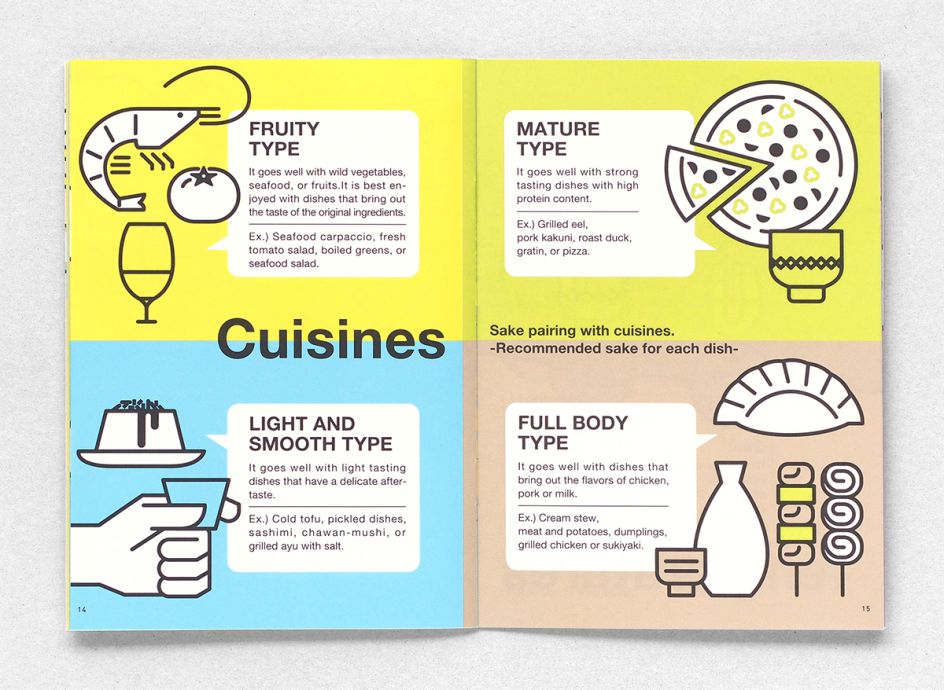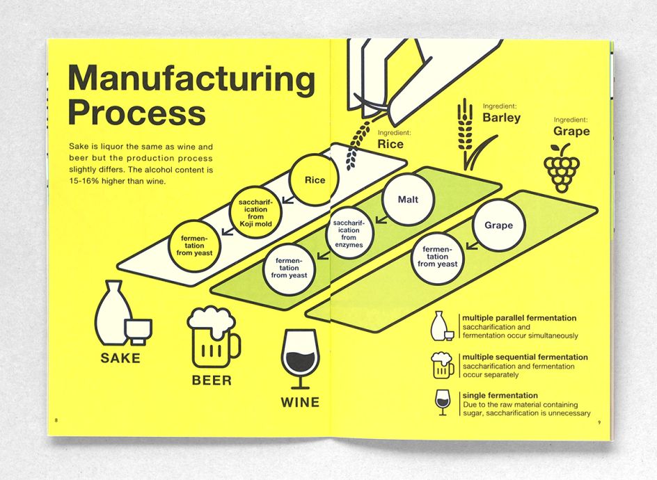 An Introduction to Sake is a delightful handbook designed and illustrated by Masaomi Fujita for a sake seminar in New York by Iinuma Honke, a Japanese brewery that wanted to better educate bar and restaurant workers about the drink.