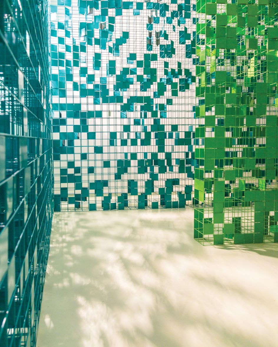 In the second exhibition space, you're confronted with a colourful maze, a colossal grid structure that reimagines the shapes and tones of an urban environment, and explores architecture, city planning and memories. Rashid says: "I was inspired by winding narrow alleyways and traditional architecture. I would like the audience to experience the maze as a conceptual entity – a spiritual journey with no fixed destination."