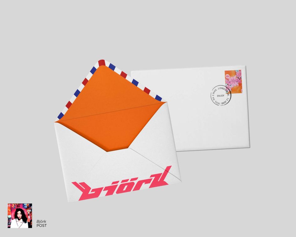 For the Bjork image, for instance – the designer's "absolute favourite artist" – her 1995 album Post has been reworked as a "letter sent from London...on the cover, her dress really reminds me of a postcard," says Bichi.
