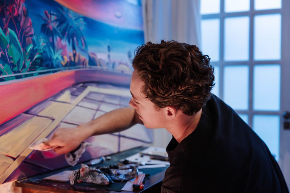 Working to photographs he has taken of building sites, his vibrant, dream-like artworks feature construction workers, confronting our "seemingly endless stream of idealised domestic environments found on digital platforms". It's a reality check for those of us who have forgotten that 'perfection' doesn't really exist.