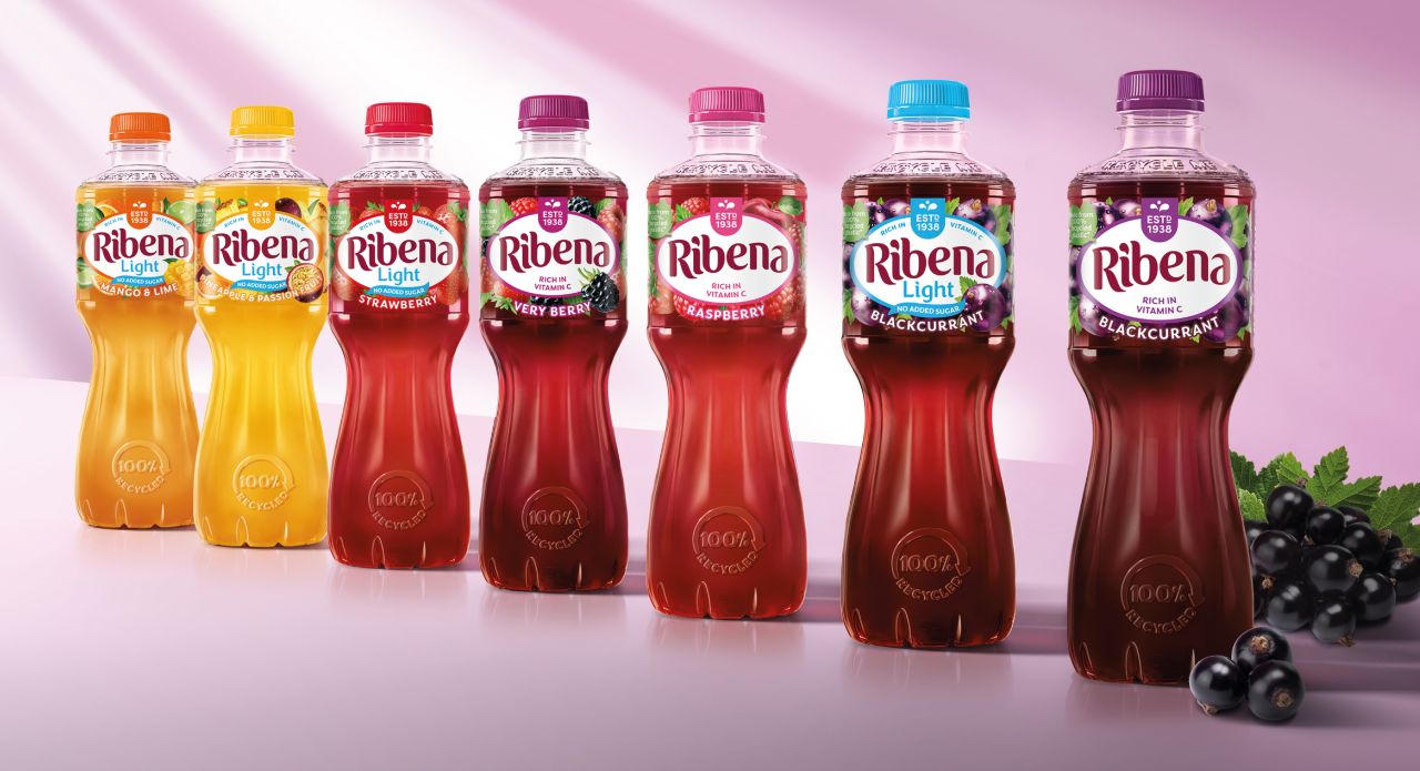 The RTD product bottles central to the Ribena range have been modernised with a new, more elegant bottle shape, aiming to "appeal to an ever more sophisticated market and audience" through a design that references the look of cut glass retaining elements from the brand's heritage.