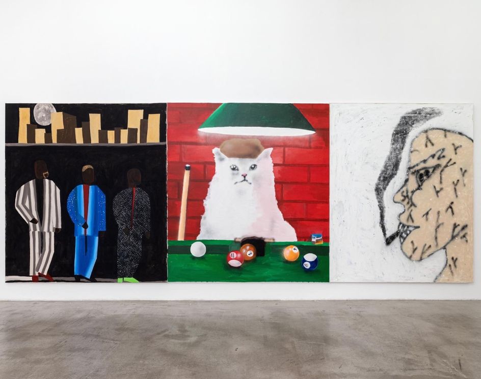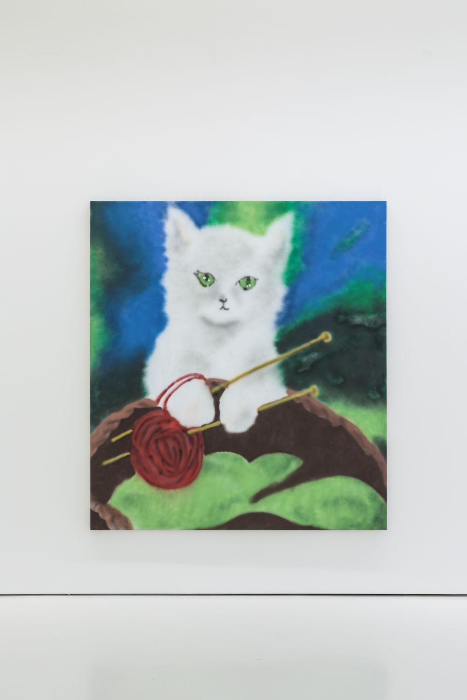 Depicted in bright, airbrushed colours – a nice little nod to his tagging past – Ricardo's images of animals have a playful sense of composition. We sometimes see them occupying unusual spaces and doing ordinary activities. Just take the painting of a cat poised to take a turn at the pool table. It's all part of an art style that he describes as "naive figurative?!"