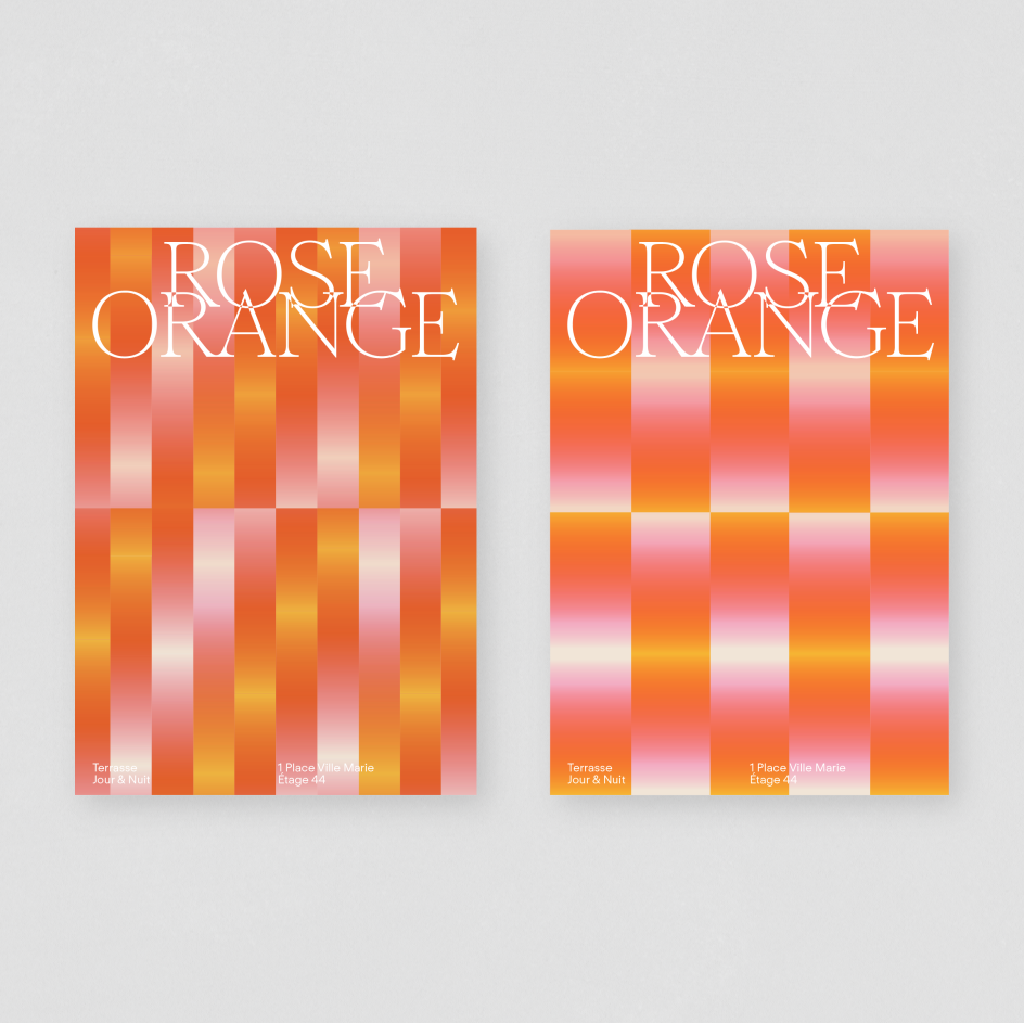 Sat atop the 44th floor, way up high on the prestigious Place Ville Marie, Monreal, is a new summer terrace, Rose Orange, designed by the A5 group. With heads almost in the clouds, visitors can enjoy the views and indulge in the sunsets on show every evening. The warm, milky hues of the terrace sunsets are what have inspired the graphic identity created by Baillat Studio, who was enlisted to give the terrace a pink-infused makeover.