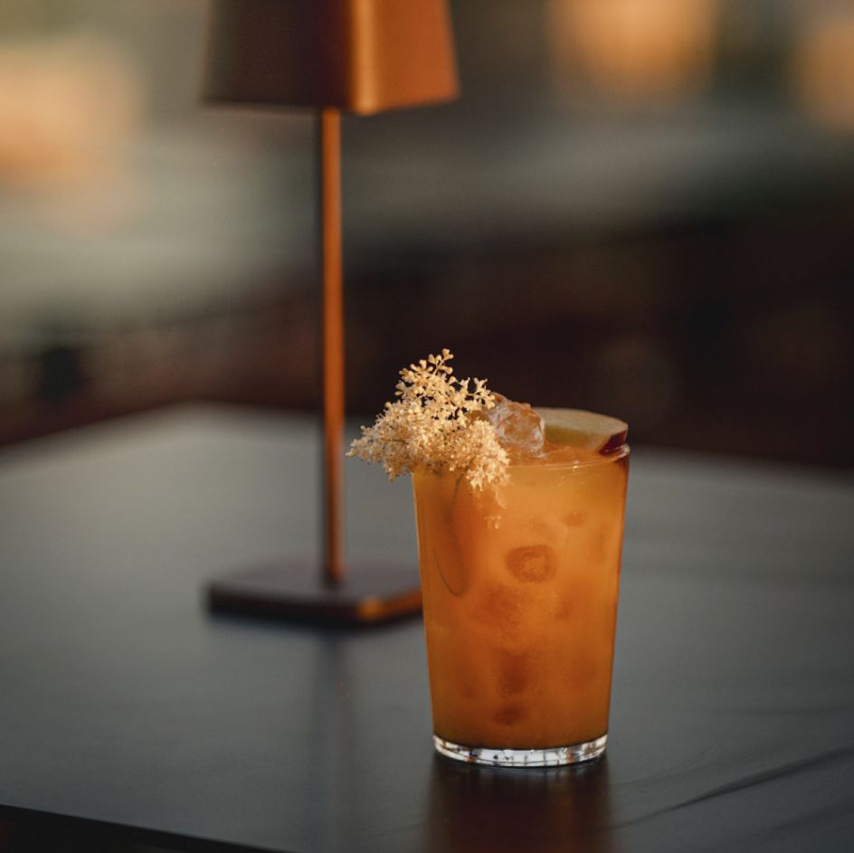 Aesthetic details played a significant role in shaping the brand identity of Rose Orange. Baillat Studio chose to embrace the gradient of the sunset, "breaking up" the hues in a modern, almost woven-like composition lavished in pinks and reds. This can be seen in a chequered design on the back of a coaster, the poster design, website, matchboxes, menu or even the colour of an ice-cold Aperol Spritz – all of which makes the "terrace look unique and modern", says Jean-Sébastien.