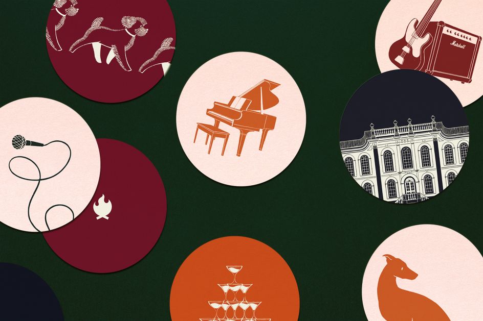 The next development was a playful new illustration style, creating unique monochrome illustrations to help bring to life what makes Kindred so special: a grand piano, branded drum kit and microphone on a looping cord to represent Kindred's dynamic roster of live music events.