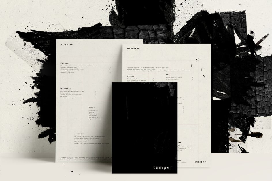 The brief was a re-design of all Temper assets, from the website, to the menus, and all marketing communications, which needed to be shot through “with attitude and cool”.