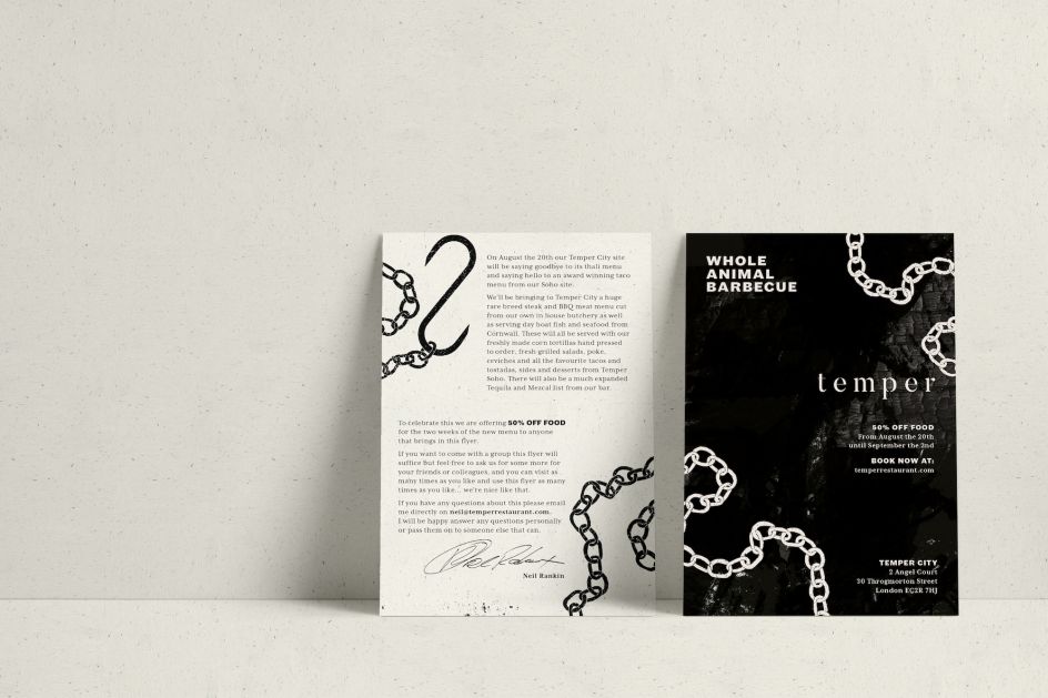 Temper is a whole-animal barbecue concept restaurant with three venues, in Soho, the City and Covent Garden. The Run For The Hills graphics team spent six months cooking up a branding design, with regular input from the restaurant’s celebrity head chef, Neil Rankin, and fellow Temper founder Sam Lee.