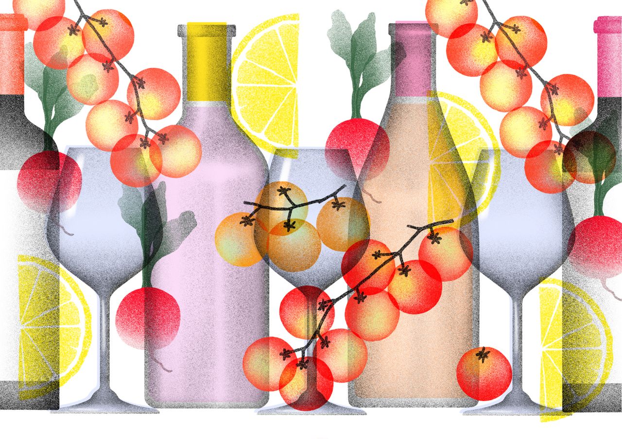 Another recurrent theme in Sarah's artwork is the depiction of food and drink. She finds solace and joy in capturing these moments – a Sunday brunch shared with friends, a coffee break or a family dinner. These scenes, infused with nostalgia and warmth, are coupled with Sarah's distinctive style that feels textural and partially translucent – bubbles, bottles, glasses and various table-top objects are stacked on top of each other in artworks reminiscent of a blissful collage. "Additionally, I have a passion for travel because it allows me to break free from my usual routine, gain fresh inspiration and explore diverse culinary delights."