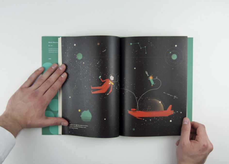 "Each planet Stephen visits is a metaphor for a different stage of the illness. The publication is a storybook communicating motor neurone disease in an indirect way so people can enjoy the read, as well as, learning information about the illness and how amazing the chemistry of the brain can be." Beautiful work. And you can discover more over at Helloyoungfriends.com.
