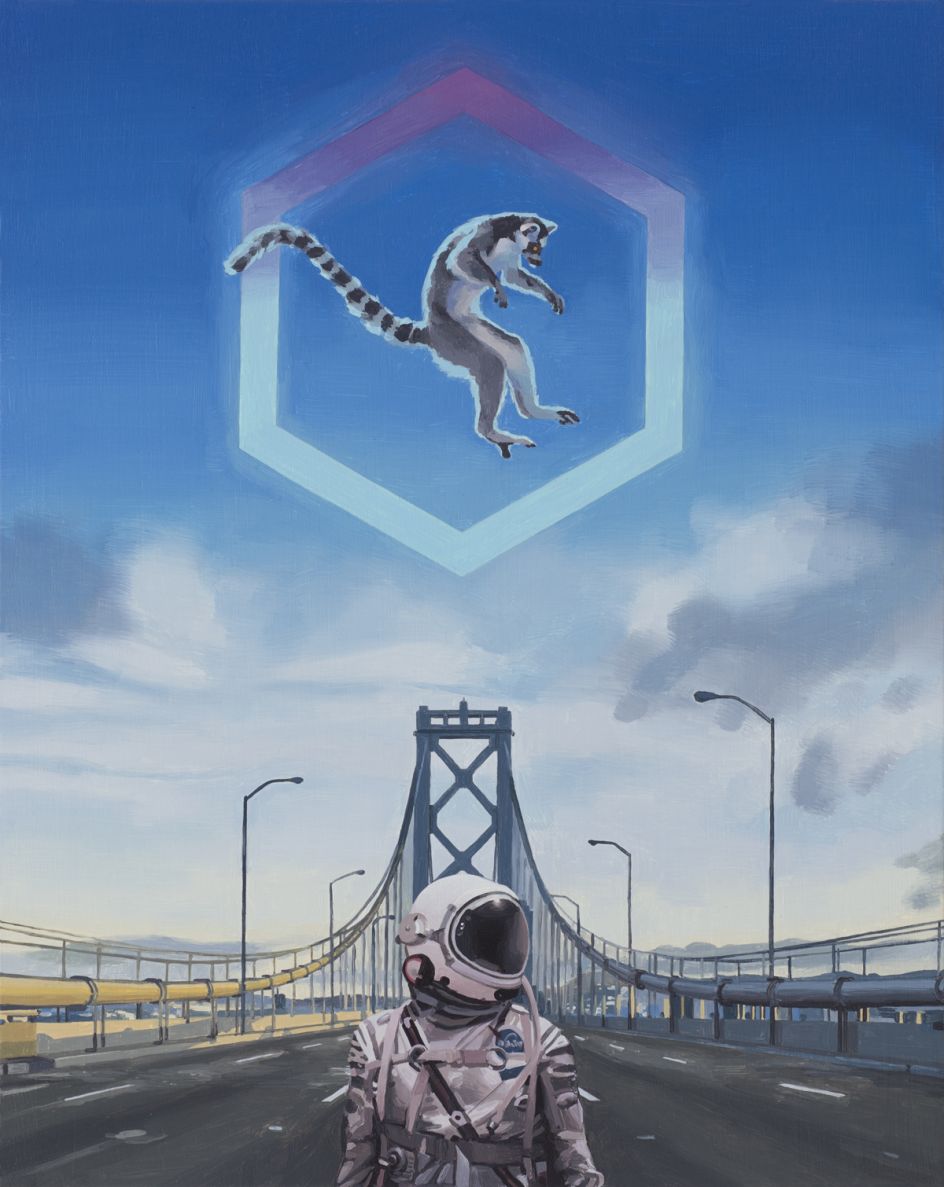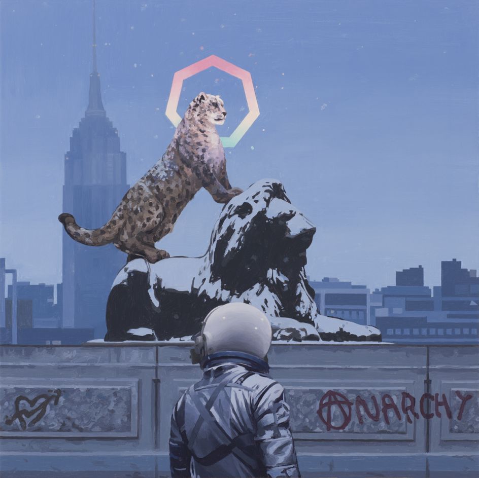 "In this latest series, my astronaut explores a world where animals have, unsurprisingly, outlasted us. They wander a wilderness filled with our debris, each of them under a mysterious shape, which might be magical or might be technological in nature."