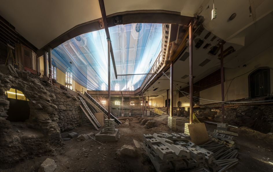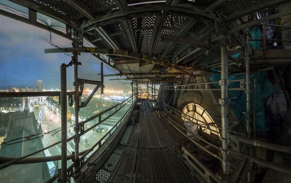 You can check out a selection of the photographs below, featuring the clock face of the Town House tower, amongst the scaffolding and repair work with the light of the docks beyond, alongside the documentation of an archaeological dig beneath St Nicholas Kirk, in the centre of the city. Andrew adds, "The dig uncovered old graves and we could see human bones amongst the stones of the building."