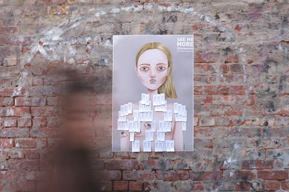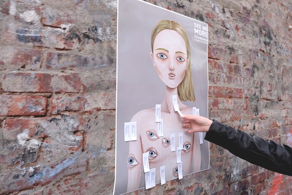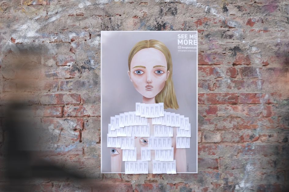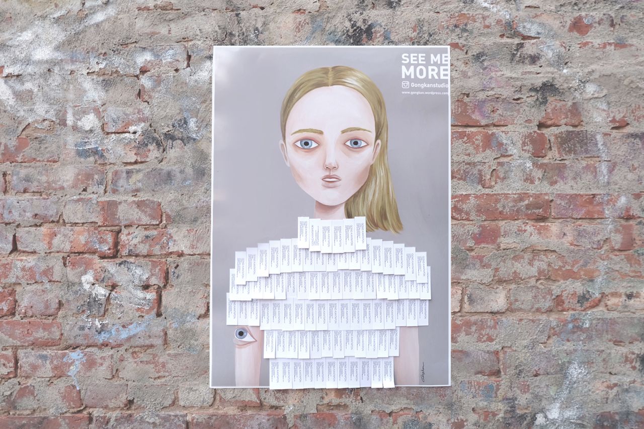 "I believe people want to see something that they cannot. Which is why I created the business card poster. It's a way of being able to showcase my artwork but people can't see it because it is concealed by business cards. People are curious and want to see the picture behind the business cards, so they remove my business card from the poster. Simple!"