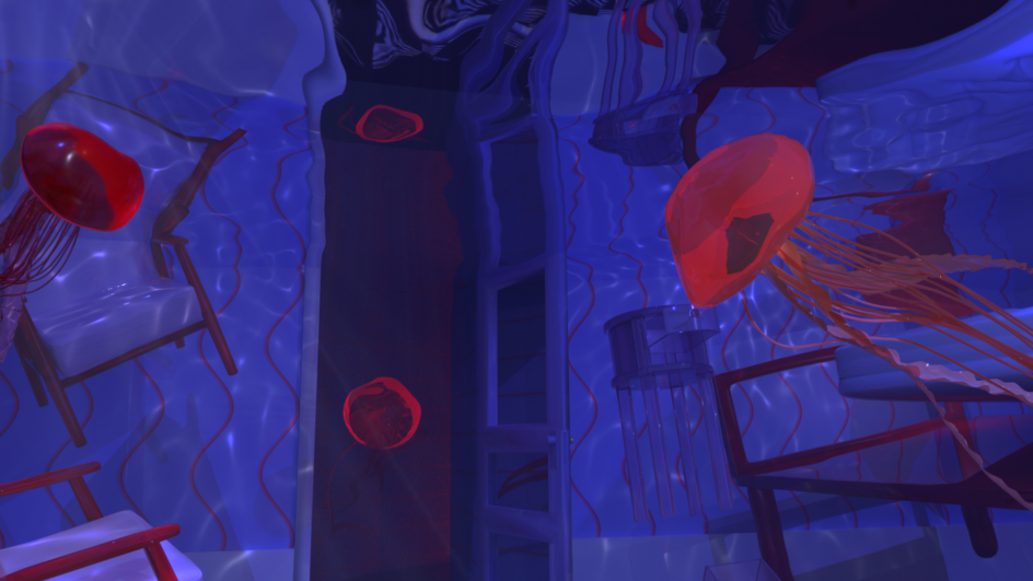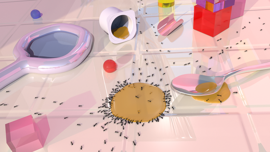 These snapshots include a room where food spillages are being feasted on by a swarm of ants, the nocturnal viewing habits of toys, and a flood that seeps in under a door before submerging an entire room. They're brief, glittering glimpses into Rebeka's memories, yet there's something universal about them that also feels familiar to the viewer's own formative experiences.