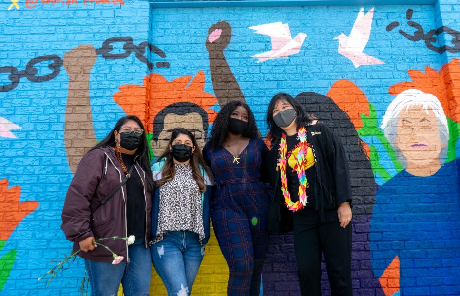 Working with the team, Damra created a giant portraiture-style mural that depicts three individuals and their unique immigration stories, including a 77-year-old Japanese American psychotherapist specialising in community trauma who was born and raised in a detention camp, her parents separated across the country. She is now the Co-Founder of Tsuru for Solidarity, a network of Japanese American survivors of the detention camps and their descendants.