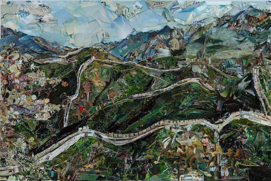 The exhibition features his recent Album and Postcards from Nowhere series for which he obsessively collected vintage photographs and postcards and then shredded and collaged them to create bold new imagery magnified to a staggering scale.