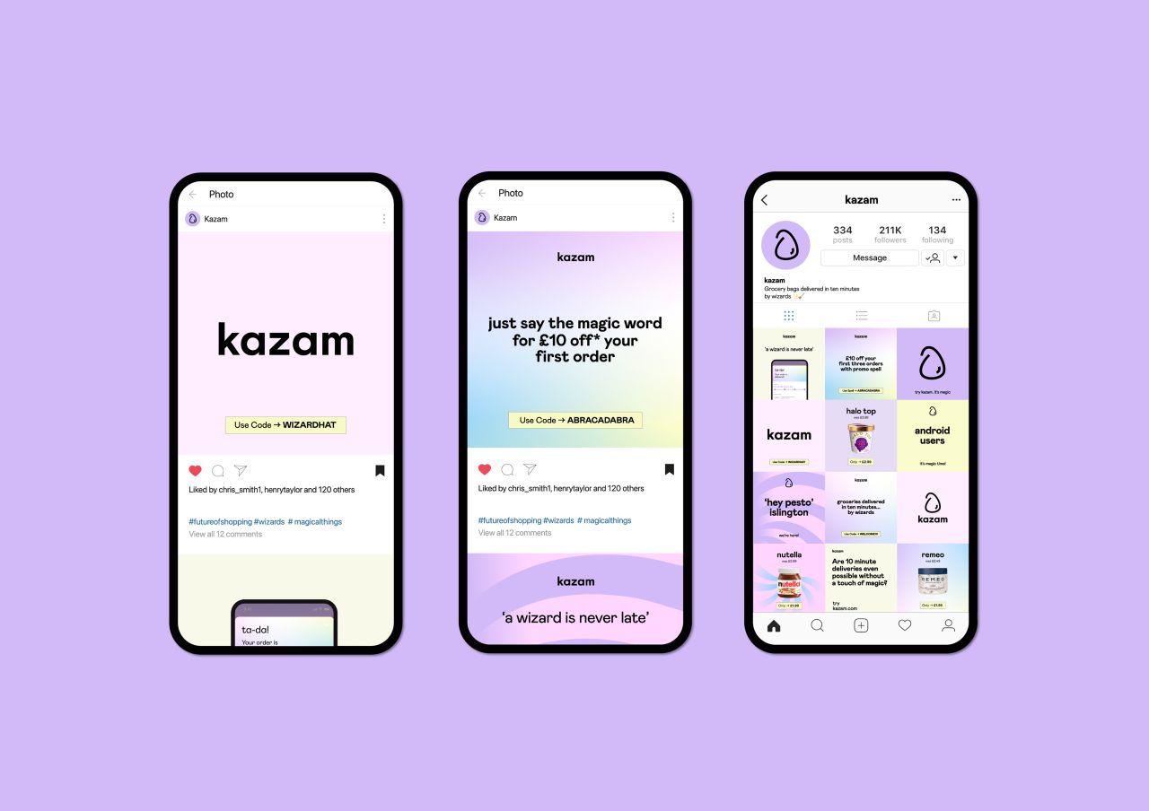 London-based studio Skep has given delivery giant Dija a serious refresh by renaming it Kazam and creating what it describes as a "new magical world, where your groceries are delivered by wizards".
