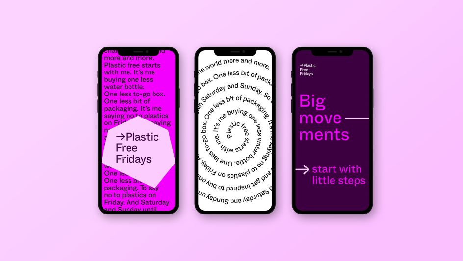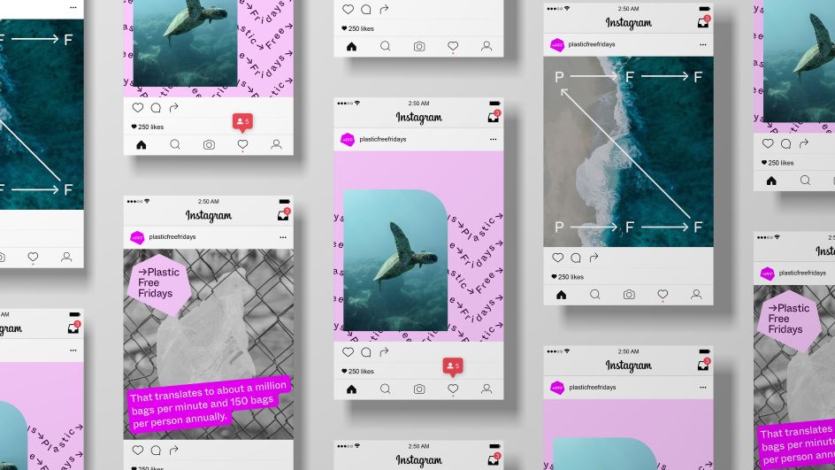 The rebrand hopes to educate and provide tangible solutions to the single-use plastic crisis, encouraging us all to change our behaviour and enjoy a more sustainable lifestyle. SF/SG created a suite of Instagram templates, stories, and animated gifs that live within the Instagram platform to help Plastic Free Fridays bring the brand to life while using trends like kinetic typography to boost engagement.