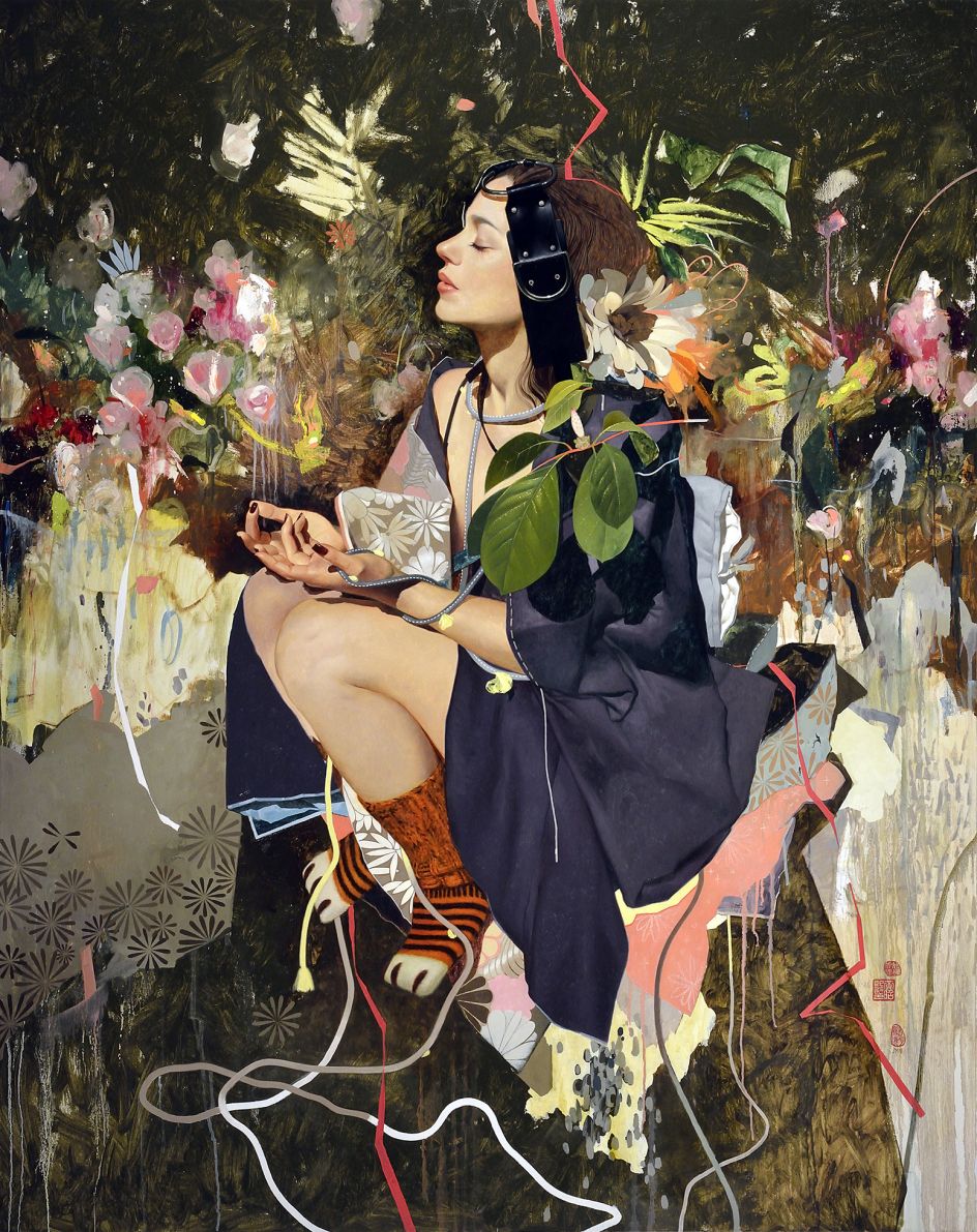 A graduate of Art Center in Pasadena, California, Milk has carefully developed her inimitable style over the years becoming known for her portraits of truly alluring and beautiful women. Drawing a lot of inspiration from her South Korean heritage, she creates refined paintings and drawings which have the great balance between the sharp focus of the charming subjects and the vivid chaos of the background.