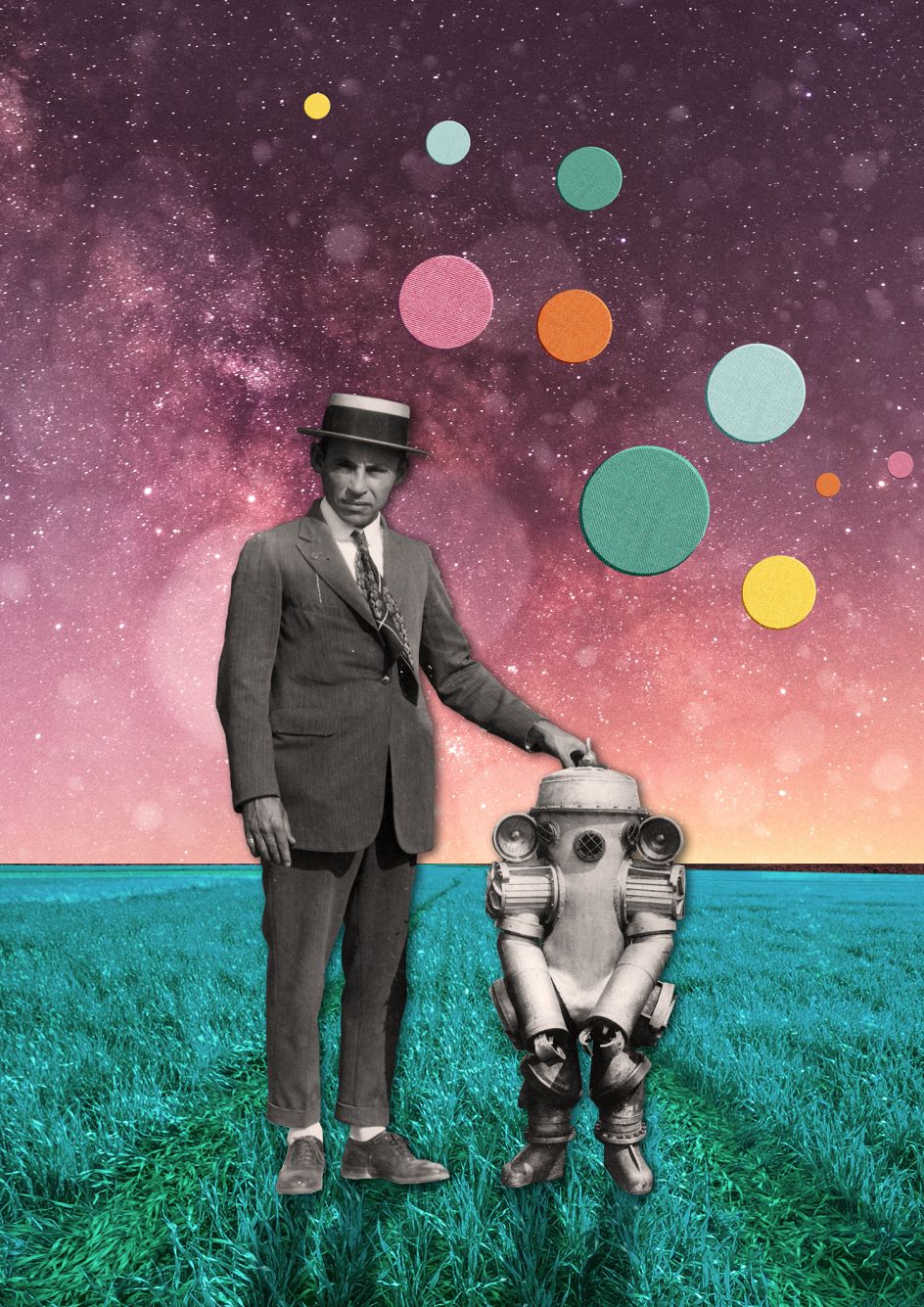 When many artists or writers imagine what life will be like decades from now, it's often a gloomy outlook. Full of dystopian themes, end-of-the-world drama and everyone fighting to survive, it's not an optimistic view of how things will turn out. Artist Joe Simpson wants to offer an antidote to the dark predictions with his latest digital collage series.