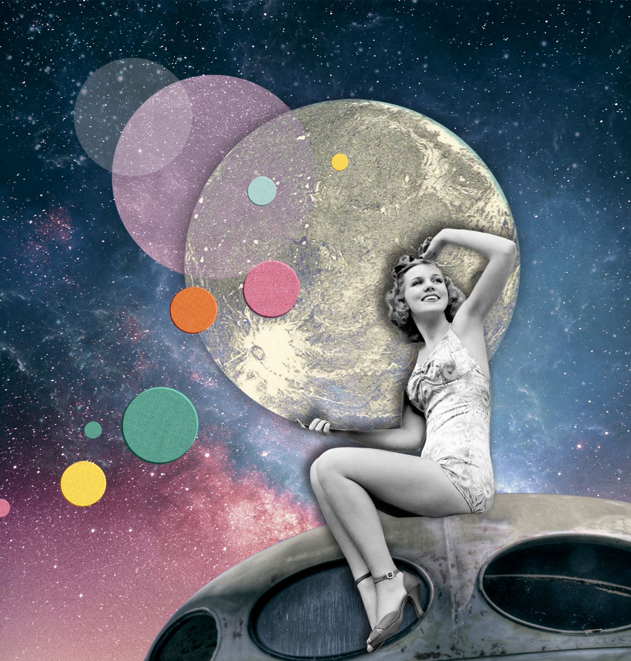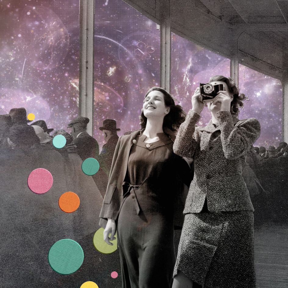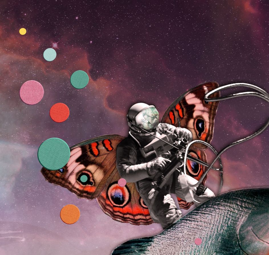 Some of These Days features artworks made up of found images from the past and paint a happier future – one perhaps imagined from the past. "So much of today's fiction about the future is a pessimistic dystopian vision, it's post-apocalyptic, zombie-ridden, natural disaster or a pandemic," says Joe of his work. "I wanted to create images that were an antidote to this gloomy perspective. An idea of the future, from a nostalgic perspective of the past, where it looked exotic and exciting – full of possibilities, where people looked happy."