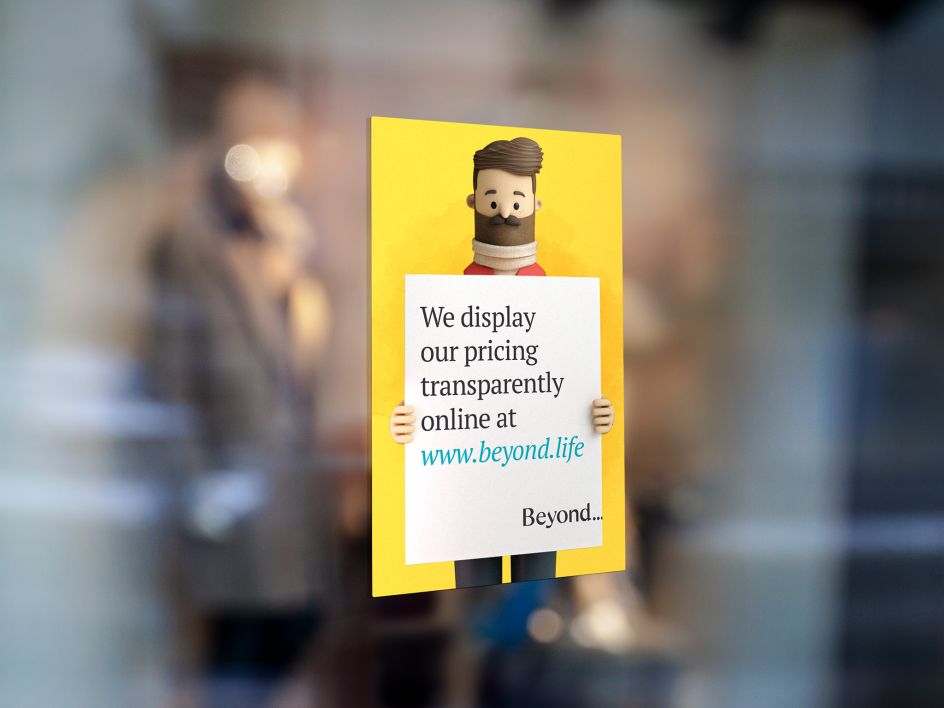 "Traditional brand communications in this sector are trapped in an echo chamber of faux respectability and tradition," says Thomas Dabner, Senior Designer at Someone. "Beyond is a contemporary brand for today and so we’ve designed a radical visual and verbal approach to open a new conversation around choice, services and price."