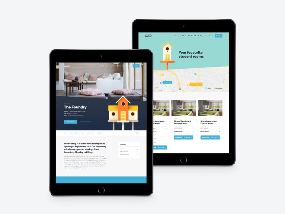 As well as the branding, SomeOne created a bespoke digital platform. "We designed the Roost Digital experience around students. There’s nothing worse than being forced into a long contract you don’t really need, so Roost lets students make their own decision. Choose your own start and end dates. Want to early arrive? Sure! Need to stay a bit longer? Great. Not sure yet? Not a problem! We’ll even let you extend on a week-by-week basis until you’re happy. This is the students contract, built by students, for students. Oh, and radical for the sector, weekly prices won’t budge regardless of how long you stay", adds Jamin Galea, Digital Design Director at SomeOne.