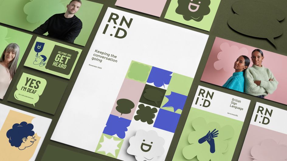 Fresh new 'speech bubble' icons project the charity's unique personality, while vibrant new photography and illustrations reflect the full range of people supported by the charity including those with cochlear implants and hearing aids.