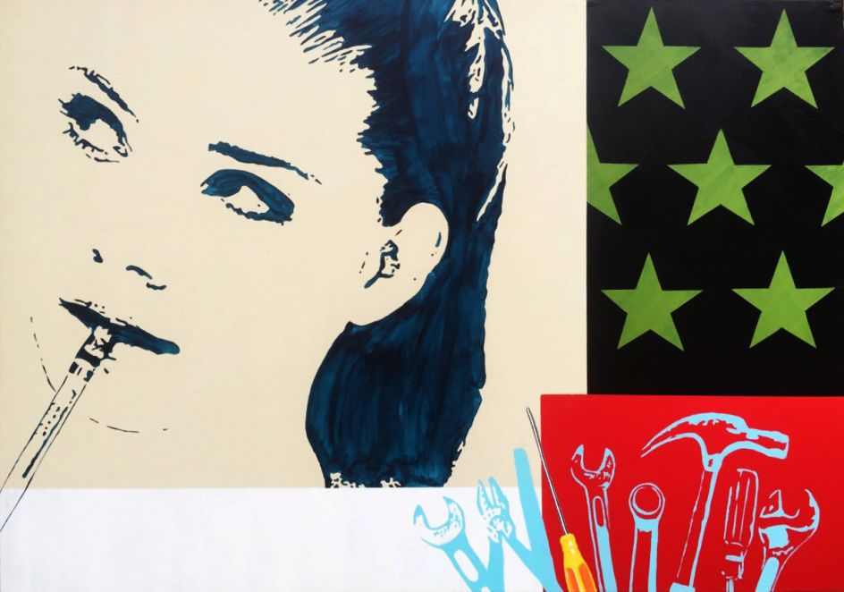 Video game controllers and smart phones emphasise the generation's reliance on technology as a form of impersonal communication, entertainment, and instant gratification. Shades of red, white and blue dominate the pieces, giving the otherwise moody pieces an inviting facade while also reinforcing the overarching theme: American Youth.