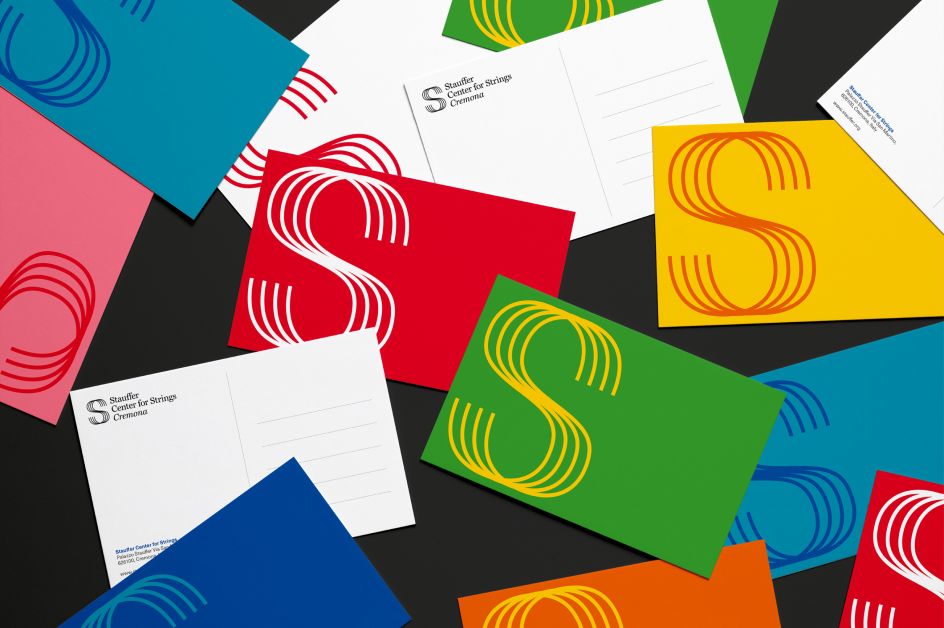 The dynamic Stauffer monogram lies at the heart of the new brand while classic Neue Haas Unica is used to form an inline letter 'S' consisting of four parallel 'strings'. These represent the four instruments taught at the Center: violin, viola, cello and double bass – all of which have four strings.