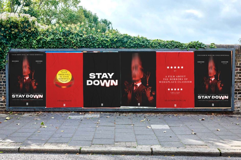Stay Down follows the success of last year's Class Polish campaign, which saw comedian Fern Brady highlight the ridiculous of classism in the workplace. This latest push takes a more sinister turn but once again sees Creature London partnering with the Department for Opportunities to create the ad. The trailer will be shown in cinemas across the UK and supported by film posters on digital OOH and in print in this Halloween's Guardian on Sunday.