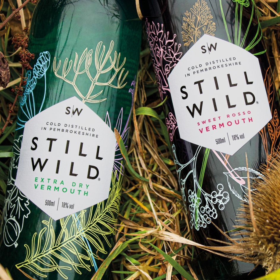 The brainchild of food and drink enthusiast James Harrison-Allen, Still Wild produces cold-distilled spirits using hand-foraged natural botanicals from Pembrokeshire. It's been a life-long dream for the former chef to create his own liqueurs and spirits. And that dream became a reality when he launched his own distillery in 2019 and started producing two signature products: a sweet Rosso and an extra dry Vermouth. He approached Design Activity to help with the branding.