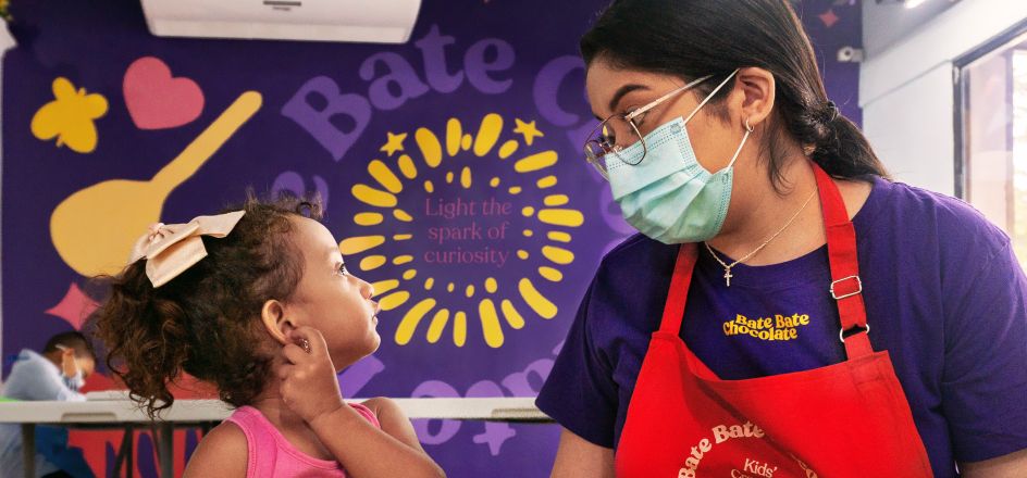 Partner and co-founder of Studio Mondas, David López, explains how they embarked on the project. "We started by listening to the clients, Bate Bate Chocolate's founders," he explains. "In our conversations, we searched for their core purpose. We learned that they wanted to spark the light of curiosity in children. Together, we decided to focus on three words: nurturing, magical and fun.